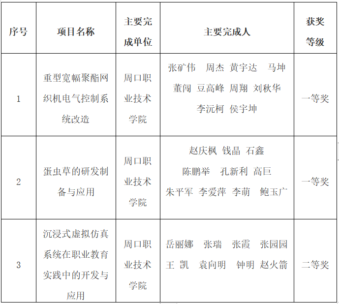 近期,周口市人民政府关于表彰2023年度周口市科学技术进步奖的决定揭晓,我校共有三个项目获2023年周口市科学技术进步奖。