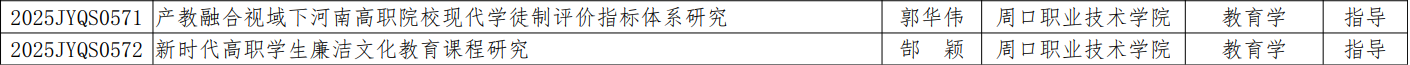 根据《中共河南省委教育工委办公室 河南省教育厅办公室关于2025年度河南省哲学社会科学教育强省研究项目申报工作的通知》(豫教工委〔2024〕32 号)要求https://jyt.henan.gov.cn/2024/11-11/3084893.html,经学校推荐、专家评审、公示无异议后,我校陆雨涵、王琳琳、郜颖、郭华伟四位老师获得立项,详见附件。