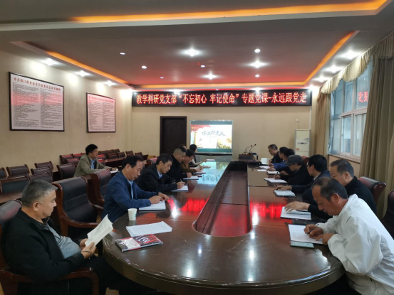 按照中央和省、市委以及学校主题教育领导小组及办公室有关精神和工作要求,10月30日下午,教学科研支部在开元校区第三会议室组织“不忘初心、牢记使命”主题教育活动第三次集体学习,支部书记曹德玉为教学科研支部全体党员上了一堂题为《永远跟党走》的精彩党课。